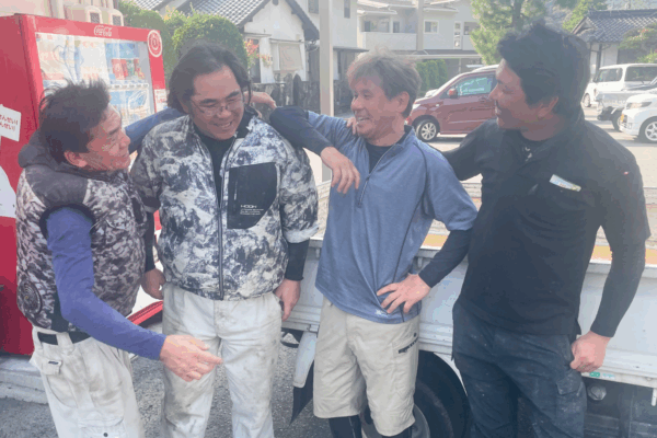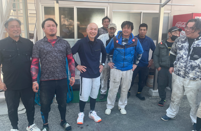 コンクリート打設の仕事は一人ではできません。だから、社員同士がとても仲良く、助け合って日々仕事をしています。その結果、明るい職場雰囲気となり周りには笑顔が絶えません。