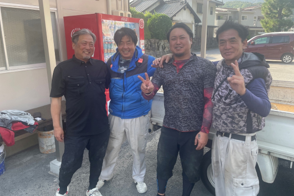 コンクリート打設の仕事は一人ではできません。だから、社員同士がとても仲良く、助け合って日々仕事をしています。その結果、明るい職場雰囲気となり周りには笑顔が絶えません。